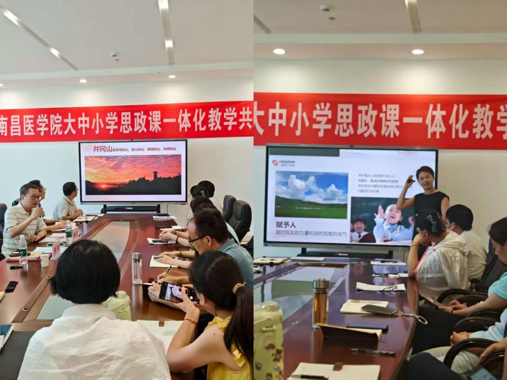 活动特邀南昌市第二中学教师鞠文、青云谱区教师发展中心主任颜洁担任指导专家。现场,学院与南昌市第二中学、南昌市青云谱区教师发展中心签署了《南昌医学院大中小学思想政治教育一体化建设协议》,并向鞠文、颜洁两位专家颁发了聘书。随后,鞠文以“红色文化是一门什么课程”为题,系统介绍了高中《红色文化》课程的教学设计与实施路径,并结合获奖课例《井冈山道路》,分享了其“金课”建设经验。颜洁则围绕“真信真讲,以生为本”,通过典型案例,阐释了小学低年级思政课教学中理论讲授、情感共鸣与价值塑造的融合路径。