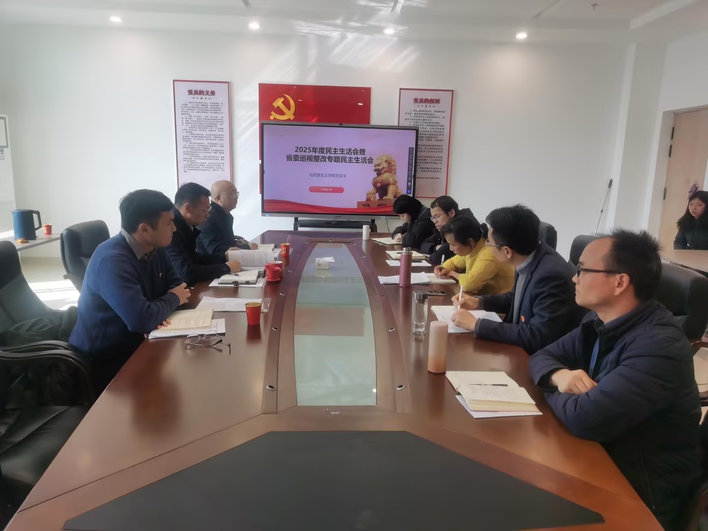 按照学校党委统一部署,2026年2月2日,学院党总支在党员活动室召开2025年度民主生活会暨省委巡视整改专题民主生活会。学校督导组到会指导,学院党总支全体委员参加会议,教研室主任列席会议,学院党总支副书记董洁主持会议并作总结讲话。